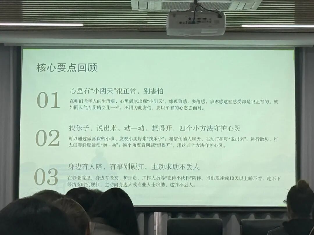 辅导聚焦“关注老年心理健康,提升关爱服务水平”主题,一是围绕“老年人常见心理问题与应对指南”开展专业辅导,着力提升基层人员精准识别老年心理问题、掌握有效沟通技巧、提升专业服务的能力。二是深入分析当前形势,就建立常态化心理关怀机制、完善筛查预警体系、各部门加强协作协同等工作作出具体部署。三是指导各街镇及养老服务机构将容易产生孤独感、失落感、焦虑感的老人给予重点关注,主动了解需求,为其提供多样化关爱帮扶。