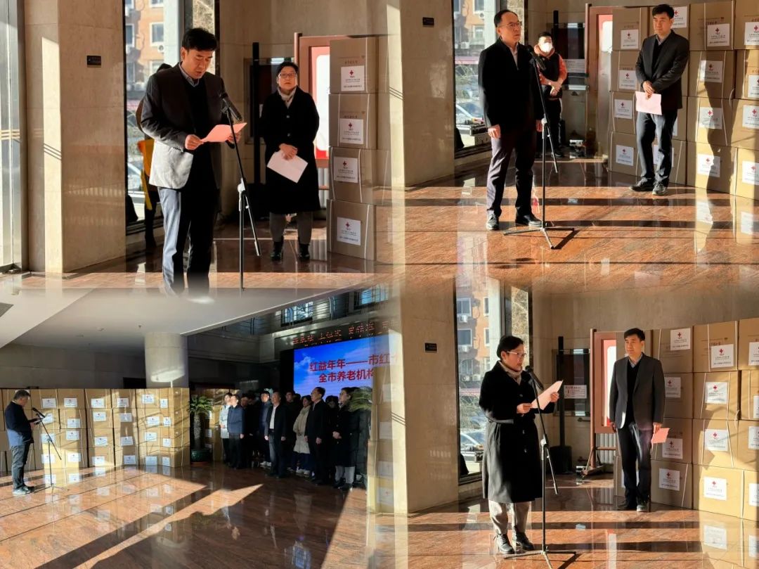 捐赠启动仪式在市民政局机关一楼大厅举行。市民政局党组书记、局长朱峰出席活动并讲话,市红十字会党组成员、副会长张彤,市红十字会党组成员、秘书长毛全华到场指导。活动由市民政局副局长张岩主持。市红十字基金会、市民政局相关处室负责人,市内六区民政局分管领导、相关工作人员及有关养老机构代表等50余人参加活动。