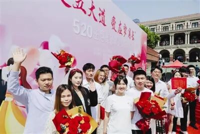 天津市民政局相关数据显示,去年“520”当天,全市办理结婚登记1395对。而今年“520”当天,全市共办理结婚登记1509对,人数有小幅提升。从各婚姻登记处和集体婚礼现场的火爆程度来看,依然是爱意满满。