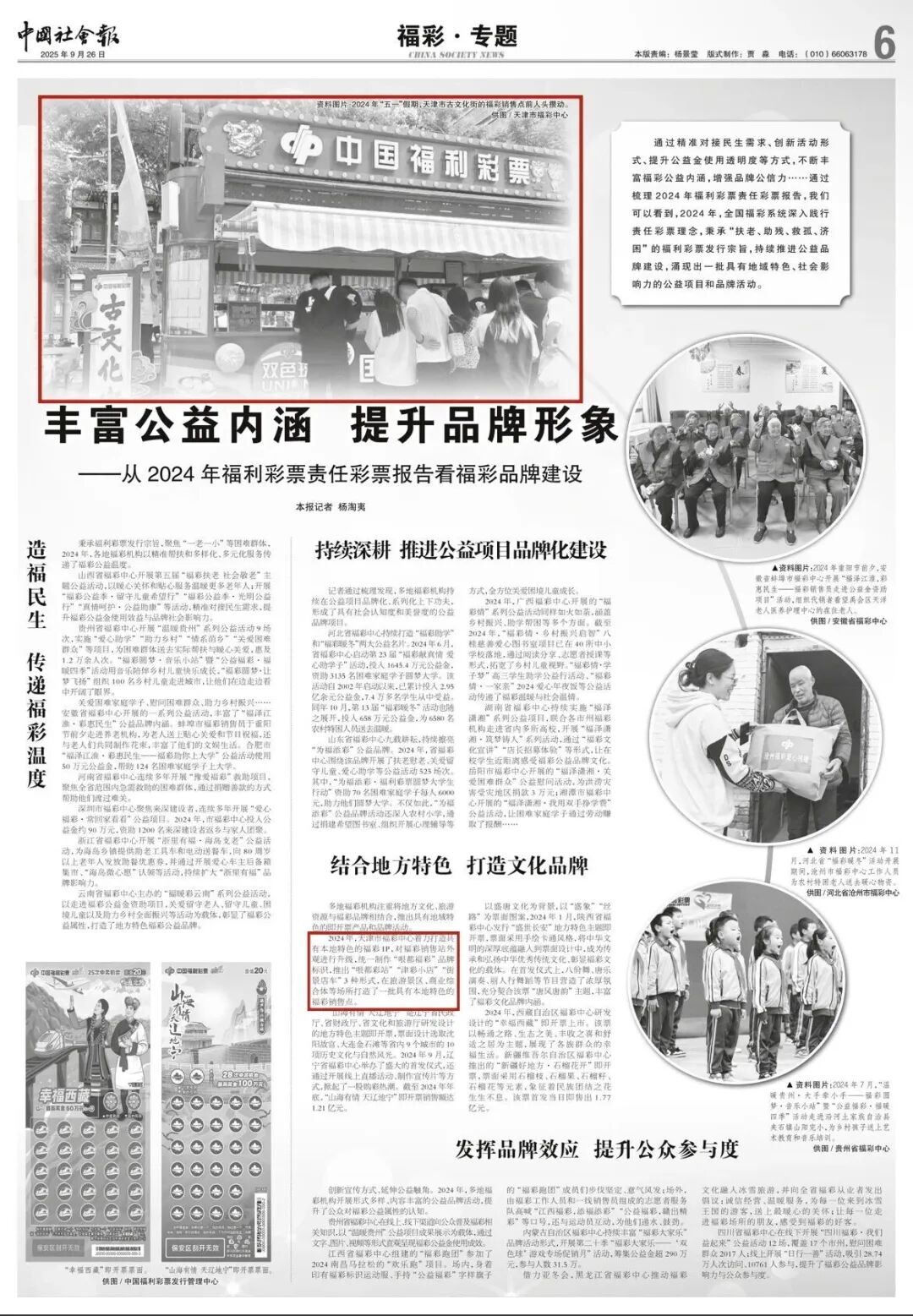 9月26日,《中国社会报》福彩专题对天津市福彩中心着力打造具有本地特色的福彩IP进行报道。