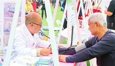 昨日(10月15日),2025年天津市“敬老月”活动启动仪式在和平区民园广场举行。图为市民现场接受义诊服务。 记者吴迪摄