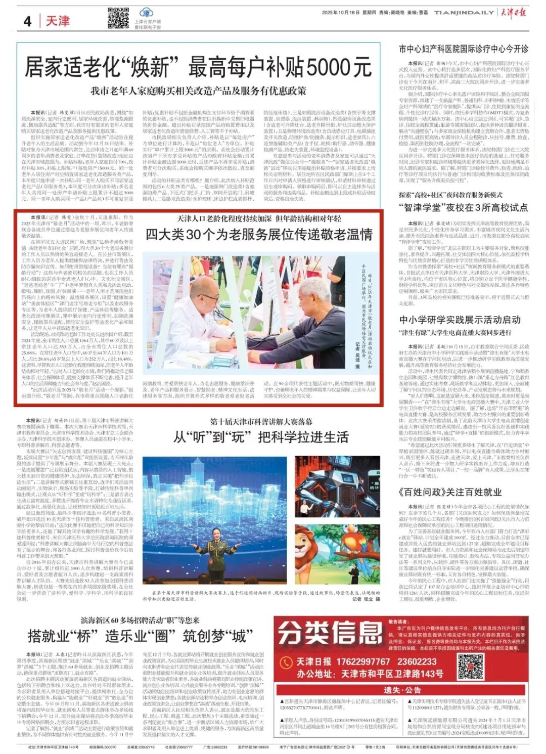 金秋十月,又逢重阳。作为2025年天津市“敬老月”活动中的一项,昨日(10月15日),市老龄委联合各成员单位通过搭建为老服务展位向老年人传递敬老温情。