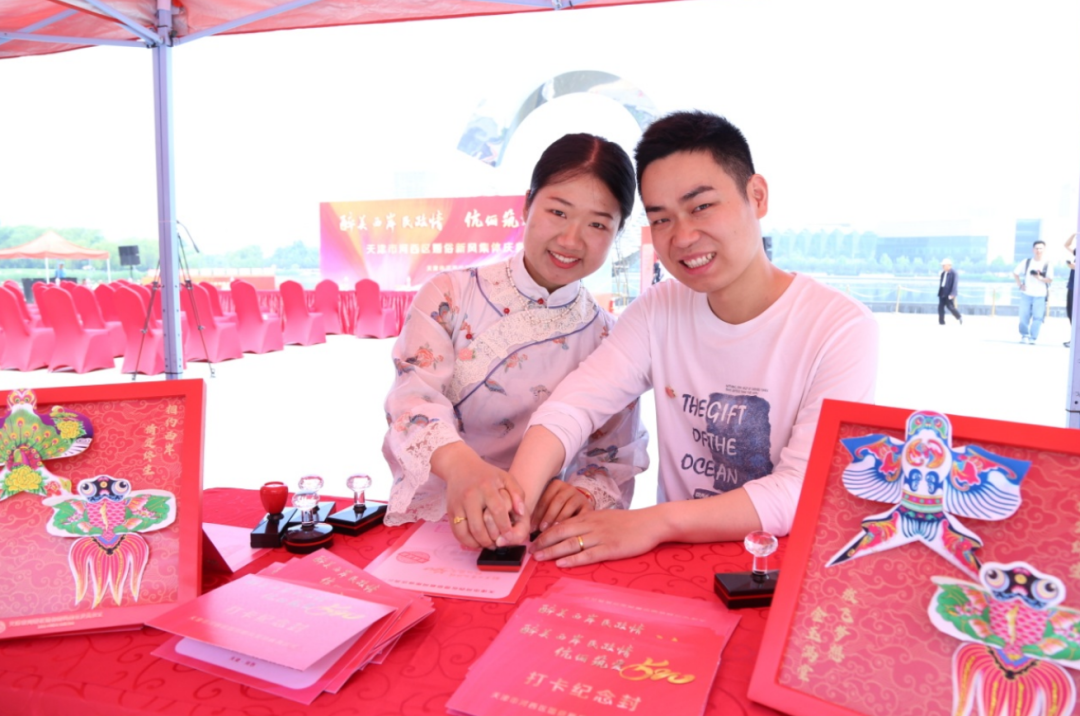 天津市、区相关领导出席了活动,为十对新人颁发具有中华传统文化的《婚书》并送上诚挚祝福,勉励新人们相互扶持、尊重,共同经营好婚姻家庭。