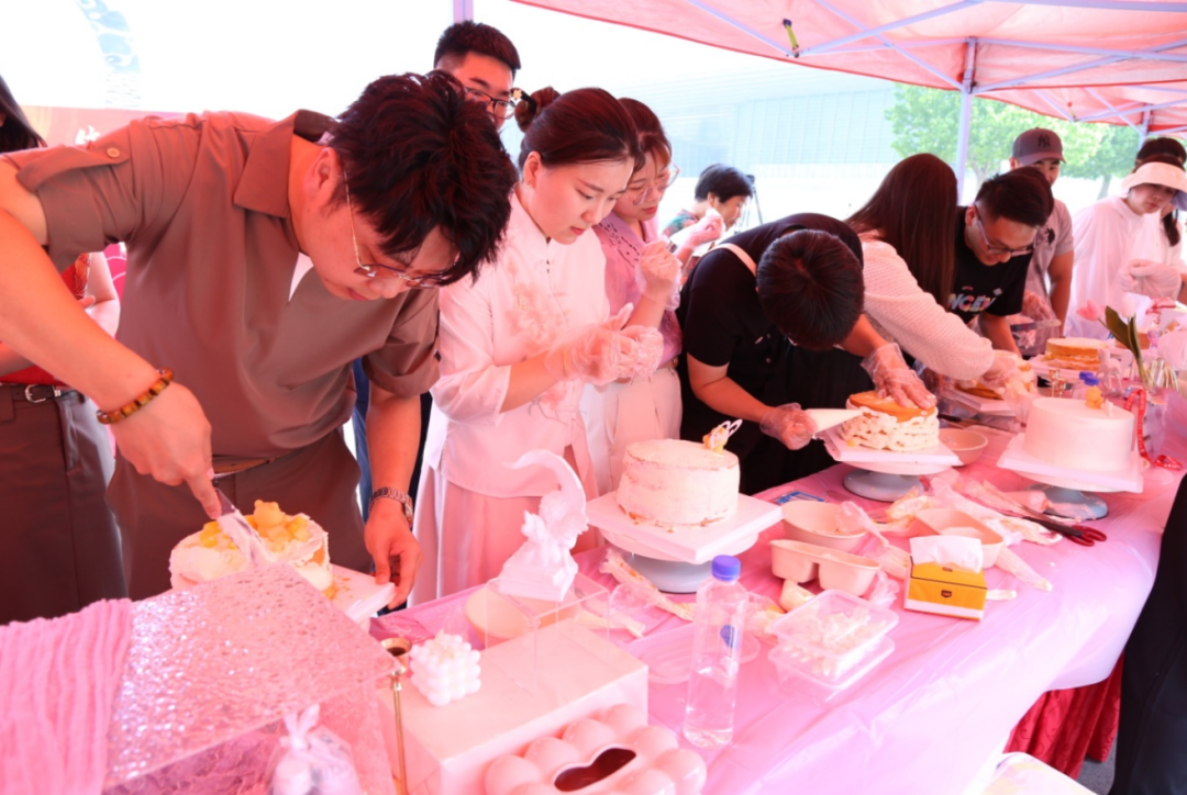 活动结束后,新人们参与线下新婚主题蛋糕、手捧花DIY等一系列体验活动。现场市民观众参与主题纪念封打卡集章体验。