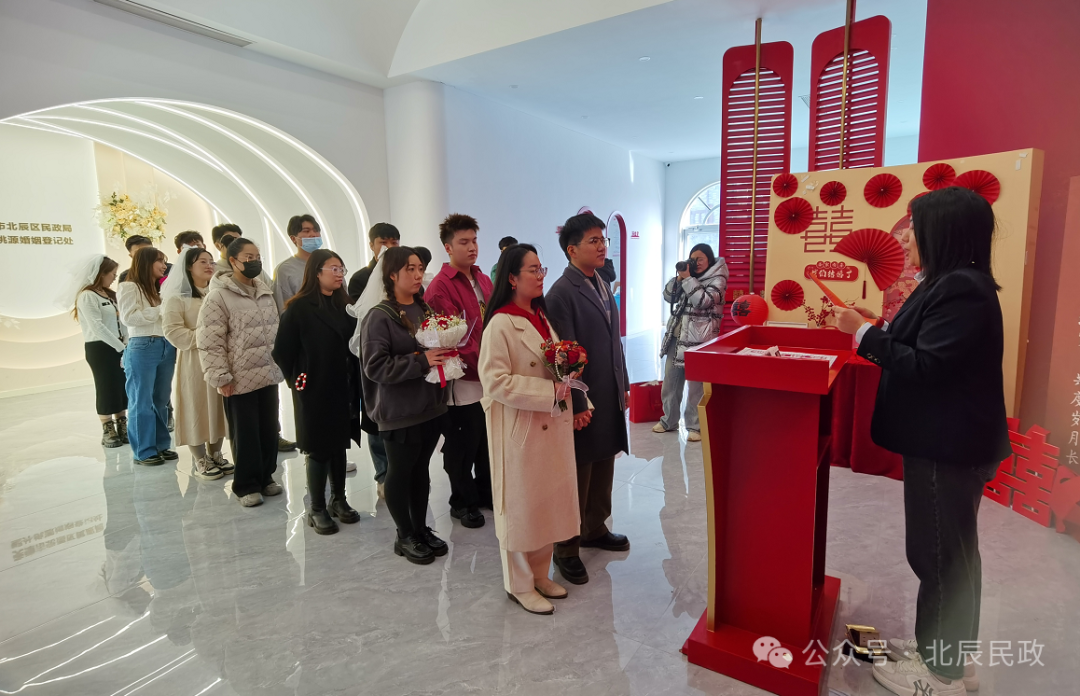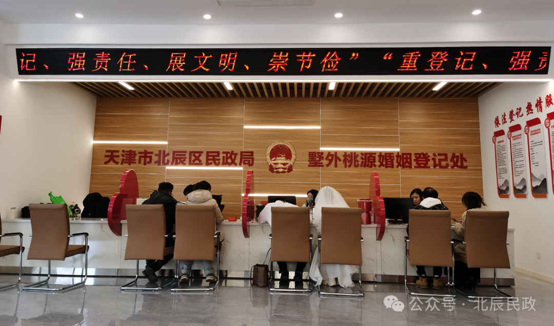 为了应对情人节登记高峰,北辰区民政局婚姻登记处也提前做好了准备,通过增加预约名额、优化人员分工、延长办公时间等方式,最大限度满足新人的登记需求。