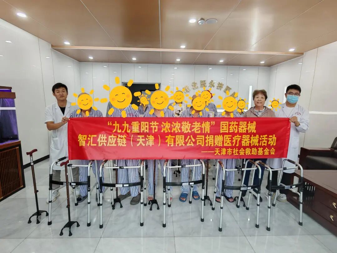 10月9日下午,基金会会同爱心企业国药器械智汇供应链(天津)有限公司将该公司捐赠的老年助行器和医用拐送至北辰永济医院,受到在院精神残疾老年人的欢迎。