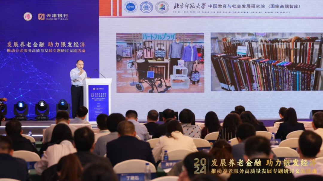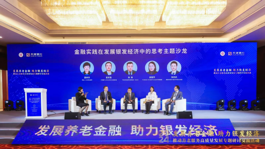 在沙龙环节,由天津银行牵头,邀请政府、高校、银行业、养老企业的代表上台,围绕“金融实践在发展银发经济中的思考”分别作了相关成功案例分享和建言献策。