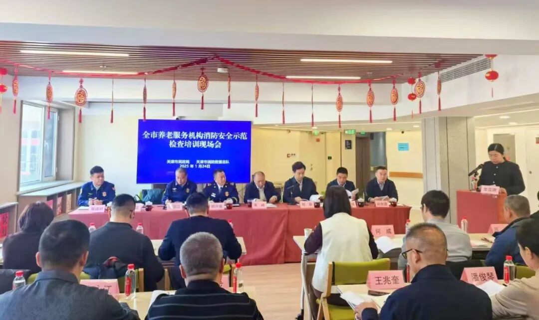 1月24日,天津市民政局、天津市消防救援总队联合召开全市养老服务机构消防安全示范检查培训现场会。市民政局党组书记、局长朱峰出席会议并讲话。市民政局二级巡视员郭勐主持会议并部署春节、两会期间养老服务机构消防安全管理工作;市消防救援总队副总队长郭兴强参加会议并讲话。河东区副区长商伟、河东区民政局局长鞠世媛、市消防救援总队河东支队支队长李志江参加会议。
